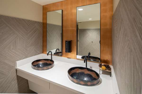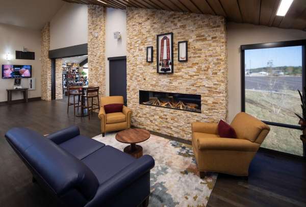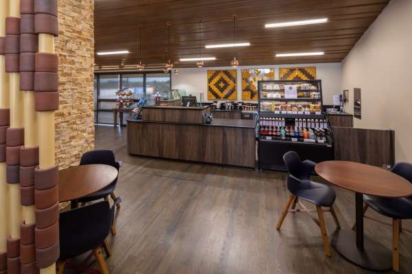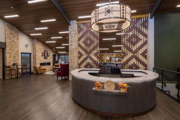 This welcome and cultural center is based at the entrance of the town of Vinita and Route 66. The existing facility served as the city’s old golf club including the golf course and amenities. The site and facility has been re-envisioned to be a cultural and educational facility, inside and outside. It boasts of custom artisan metal screens with an amphitheater like “Vessel” with a reflecting pool, educational signs and cultural items giving the guest a truly unique experience. Inside the facility you are greeted with an amazing mixture of Cherokee artisan work of a bead wall, chandelier, wood work, and modern interior design. The program upstairs has a gallery for all cultural items, a coffee bar, retail center, and commercial kitchen for events. Downstairs has complimentary classrooms, studios, and ancillary spaces. Together, the building offers a unique experience to the guest of Cherokee heritage.